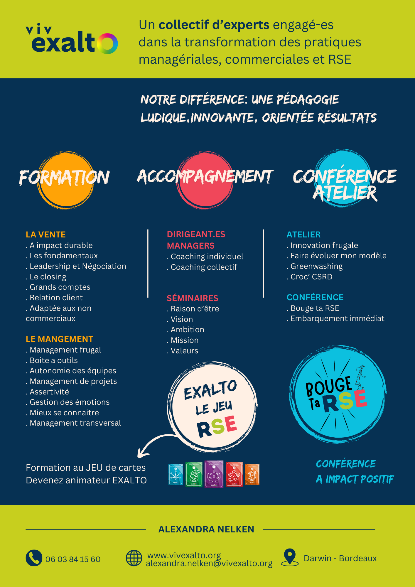 Collectif exaltant de 12 coachs, consultants et formateurs experts en changement des pratiques commerciales, managériales et RSE.